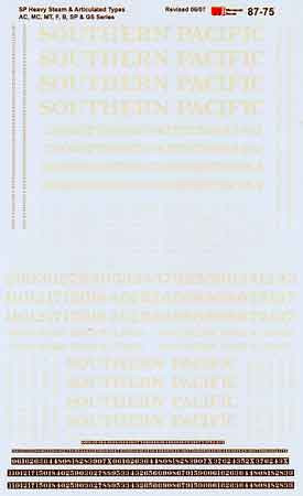 Click the button below to add the Microscale Decal 87-75 Southern Pacific Steam - Heavy Class Locos "Steam Locomotive - Heavy - 2-8-4, 2-10-2, 4-8-2, 4-8-4, 4-10-2, 2-8-8-2, 4-8-8-2" to your wish list.