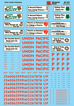 Click the button below to add the Microscale Decal 87-97 Union Pacific Cabooses - CA3 thru CA10 - Includes Safety Slogans to your wish list.