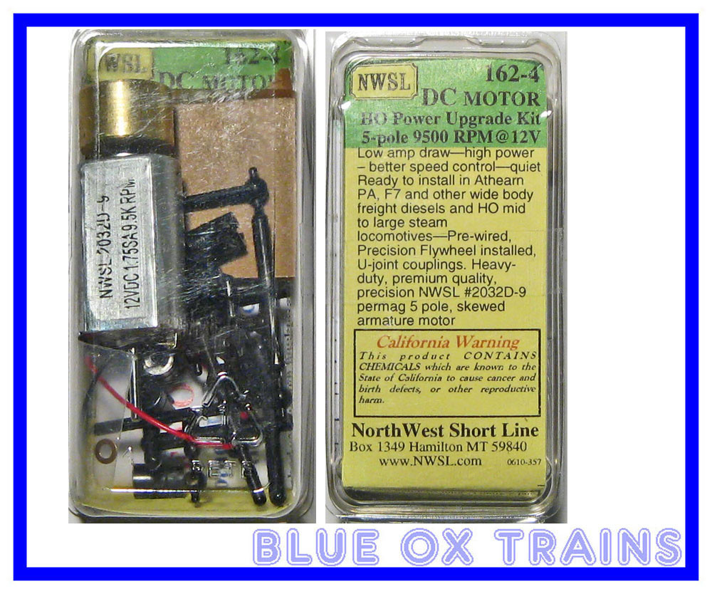 Low amp draw, high power, better speed control, quiet. Ready to install in Athearn PA, F7 and other long, wide body freight diesels, Switchers and HO mid-to-large steam locomotives. Pre-wired, precision flywheels installed, u-joint couplings (2.4 - 3/32") heavy duty premium quality precision NWSL #2032D-9 motor w/2.0mm dbl shaft